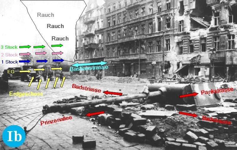 Il s'agit d'un Panther Pz.Kpfw.V Ausf.D positionné au carrefour de Badstrasse et Pankstrasse dans le quartier de Wedding durant la bataille de Berlin du 16 avril au 2 mai 1945.