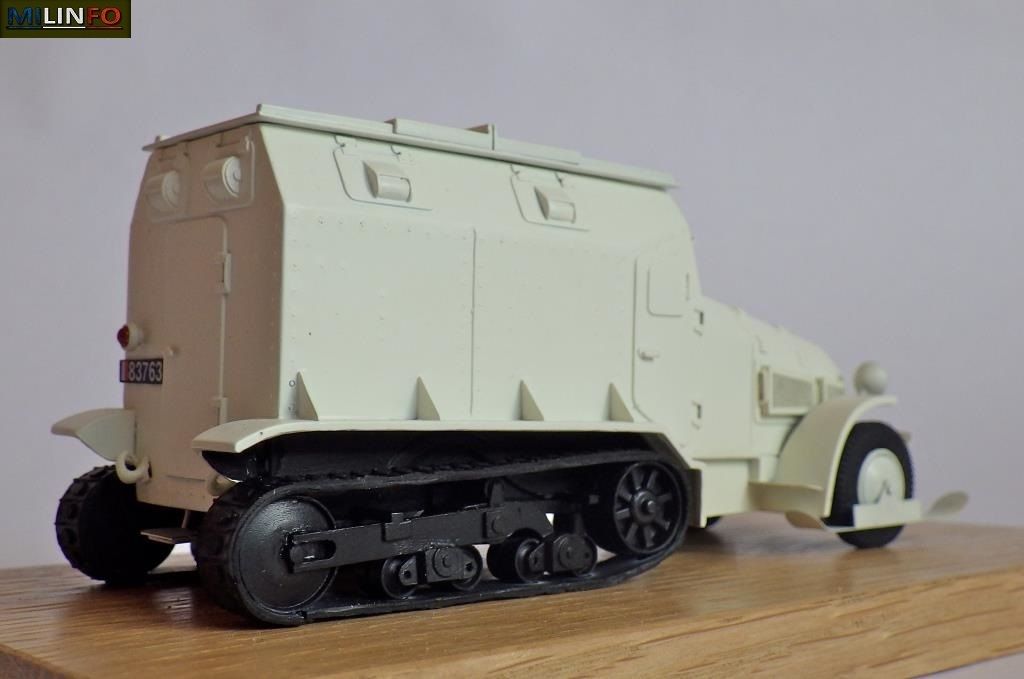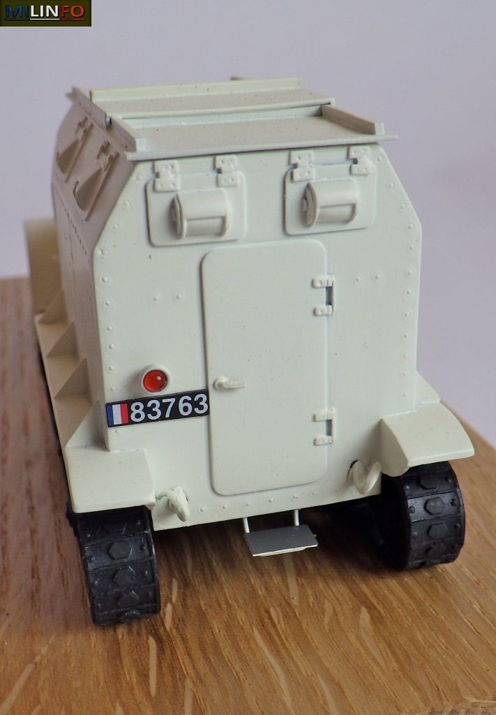 A l’instar du modèle édité pour les 20 ans de Milinfo, sa carrosserie sera confectionnée en cuivre par dépôt électrolytique, chenilles et pneus souples, pièces photodécoupées rapportées et soudées à la caisse principale, décorée, peinte et présentée sur un socle présentoir en bois vernis étiquetée de son N° dans la série.