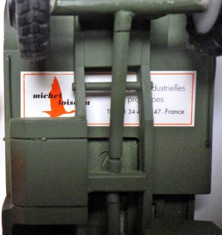 Châssis et pièce d’artillerie tout métal, cabine et plateau artillerie moulés en résine massive.
